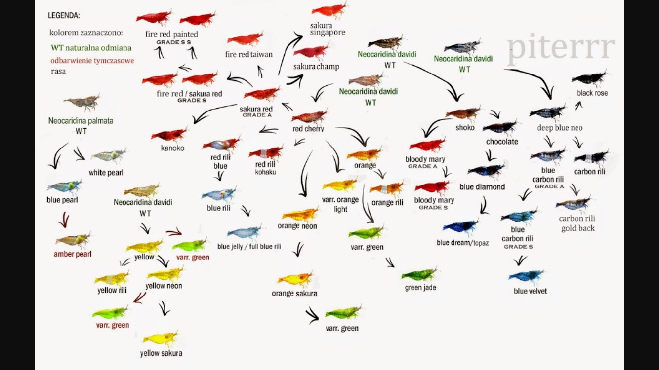 Recorrentemente, surgem na internet publicações de tabelas com várias grades de Neocaridina var. Red.