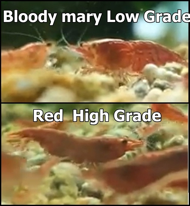 Apesar da confusão, “Bloody Mary” não são um apuramento dos “Red” e portanto não podem ser referidos como se de uma grade dos mesmos se tratassem, mas sim um apuramento proveniente dos camarões Neocaridina “Chocolate”/”Black”.
