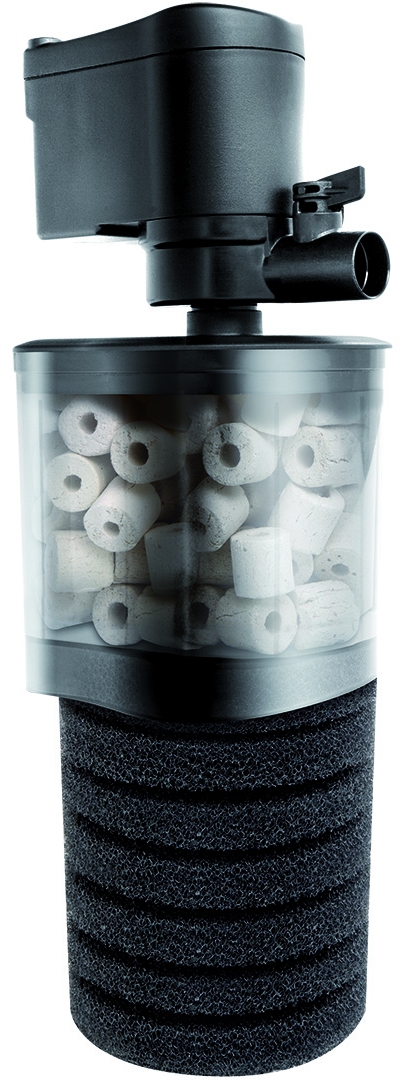 Este filtro vem com uma câmara de filtro e uma esponja de filtro. A câmara do filtro é preenchida com um meio filtrante cerâmica (incluído) que garante um substrato ideal para boas bactérias. A esponja fica pendurada abaixo da câmara do filtro.