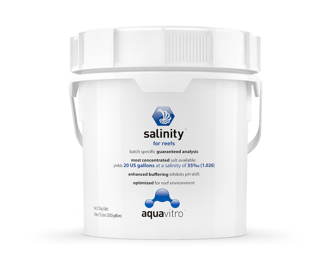 Salinity™ é uma mistura de sais especificamente formulada para aquários de recife que contém todos os componentes essenciais principais, secundários e macroelementos encontrados nas águas naturais dos recifes, mas não contém componentes tóxicos ou não essenciais.
